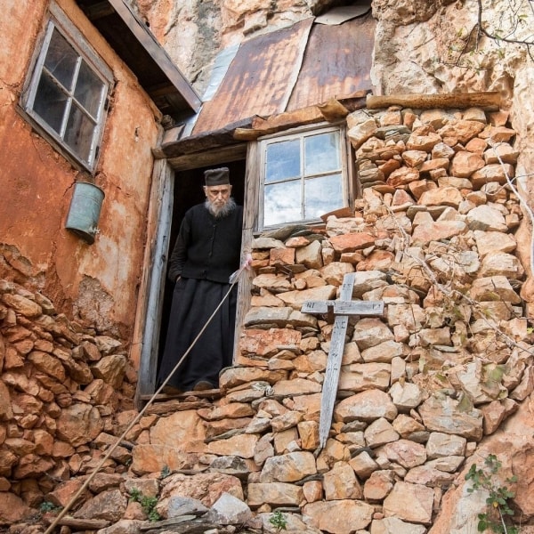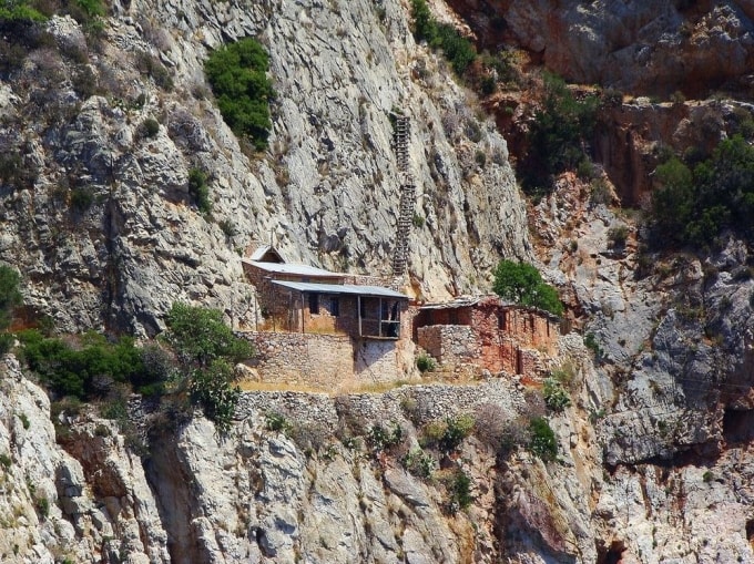 Những tu viện khép kín nằm trên dãy núi Athos ở Hy Lạp[/caption] Hầu hết các nhà sư sống cùng nhau trong một tu viện làm nhiều công việc vặt khác nhau như trồng rau, làm rượu, câu cá, khắc gỗ, may vá,... Những người khác chọn cách sống trong các căn phòng nhỏ gọi là Skete, nơi họ sống trong sự cô lập hoàn toàn. [caption id="attachment_69102" align="alignnone" width="680"]