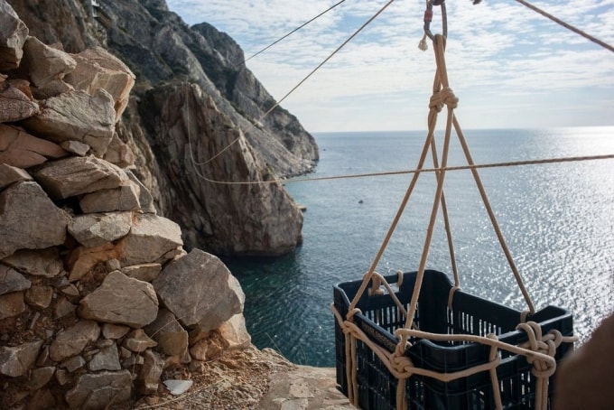 Các nguồn cung yếu phẩm được vận chuyển bằng những sợi dây cáp để đến với các căn phòng nơi các tu sĩ đang tự giam mình để tu luyện[/caption] [caption id="attachment_69106" align="alignnone" width="680"]