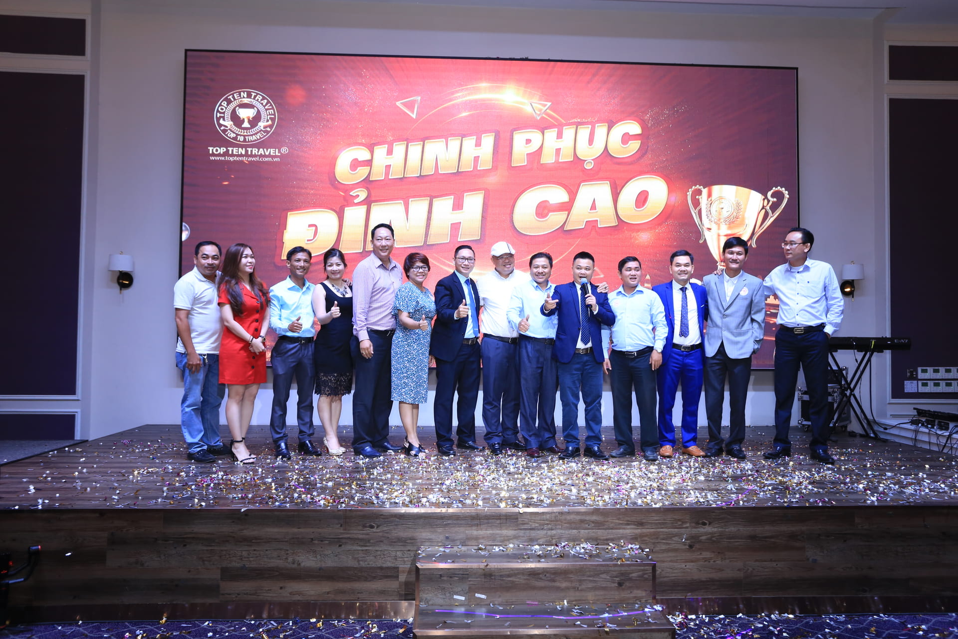 Giám Đốc Dương Bá Hưng phát biểu tại buổi tất niên[/caption] Năm 2018 là một năm thành công của Top Ten Travel Group khi công ty ngày càng phát triển, hoàn thiện hệ thống và nhân sự các phòng ban, luôn không ngừng nâng cao tác phong nghề nghiệp, trình độ cũng như tinh thần trách nhiệm. Đặc biệt, năm 2018, với sự cố gắng, nỗ lực không ngừng nghỉ, Top Ten Travel sớm đạt chỉ tiêu kế hoạch kinh doanh của năm, nâng vị thế của công ty lên một tầm mới trong lãnh vực du lịch. Qua đó, Ban Lãnh đạo Công ty ghi nhận và vinh danh những cá nhân đã có những đóng nổi trội. [caption id="attachment_24862" align="aligncenter" width="900"]
