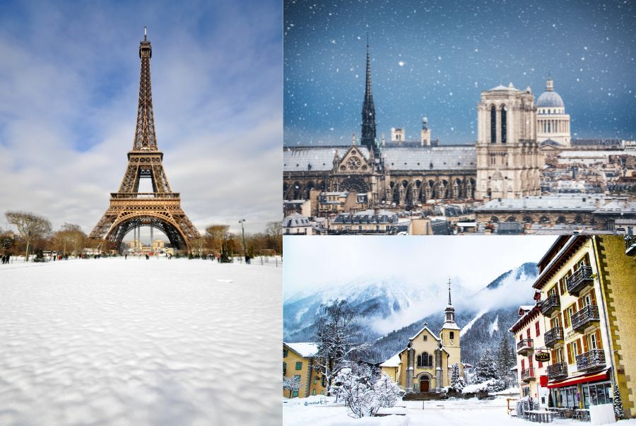 Khung cảnh các điểm đến tại Pháp được phủ tuyết trắng xóa