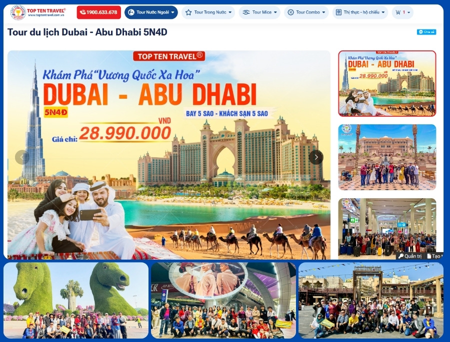 Với những ai không muốn tự lo từng khâu chuẩn bị, các tour Dubai trọn gói là lựa chọn an toàn và tiết kiệm thời gian. Tour du lịch Dubai hiện được cung cấp bởi nhiều công ty lữ hành uy tín, nổi bật trong đó là Top Ten Travel với mức giá từ 26 – 33 triệu đồng/người cho hành trình 5 ngày 4 đêm. Chi phí tour thường đã bao gồm: