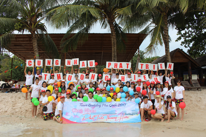 Hồ tiêu Phú Quốc[/caption] Rất nhiều trò chơi thú vị giữa 5 đội nhằm truyền cản hứng, kích thích tinh thần đoàn kết giữa các thành viên. Thú vị nhất, ấn tượng nhất có lẽ team building ở Bãi Sao, được xem là bãi biển đẹp nhất Phú Quốc với làn nước trong xanh và cát trắng mịn. Bãi Sao hôm đó nổi bật với dòng chữ Top Ten được tạo thành từ tất cả các thành viên của Top Ten Travel Group. [caption id="attachment_68772" align="aligncenter" width="680"]