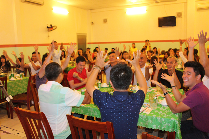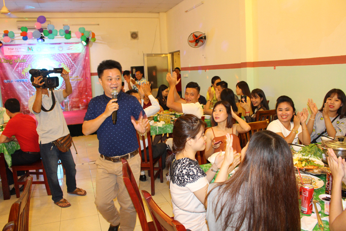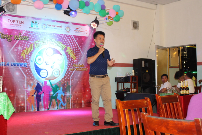 Một vũ điệu sexy, quyến rũ của đội Mộc[/caption] Gala Dinner có lẽ là đêm để lại nhiều cảm xúc nhất không chỉ riêng tôi mà là tất cả các thành viên của Top Ten Travel Group có mặt đêm hôm đó. Một đêm đầy ý nghĩa, sôi động và nhiệt huyết. Đầu tiên mọi người đều lắng lại với lời phát biểu đầy cảm xúc, vui mừng và hạnh phúc của giám đốc công ty TNHH dịch vụ du lịch Top Ten Travel ông Dương Bá Hưng. Qua đây ông cũng bày tỏ mong muốn toàn thể CBCNV Top Ten Travel Group sẽ luôn gắn chặt, đoàn kết cùng nhau nỗ lực đưa công ty ngày càng phát triển hơn. [caption id="attachment_68774" align="aligncenter" width="680"]