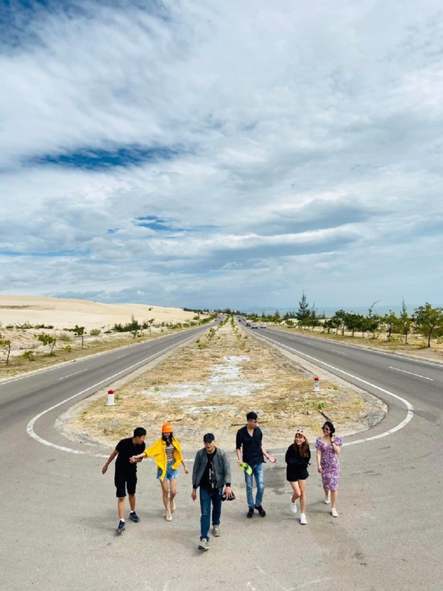 Cung đường Bàu Trắng dài gần 40km, được khánh thành vào năm 2015 và được bao phủ xung quanh là những cồn cát trắng mênh mông hoang dại cùng những đoạn cua quanh co ôm lấy đồi cát tạo nên vẻ đẹp rất đặc trưng và ấn tượng.