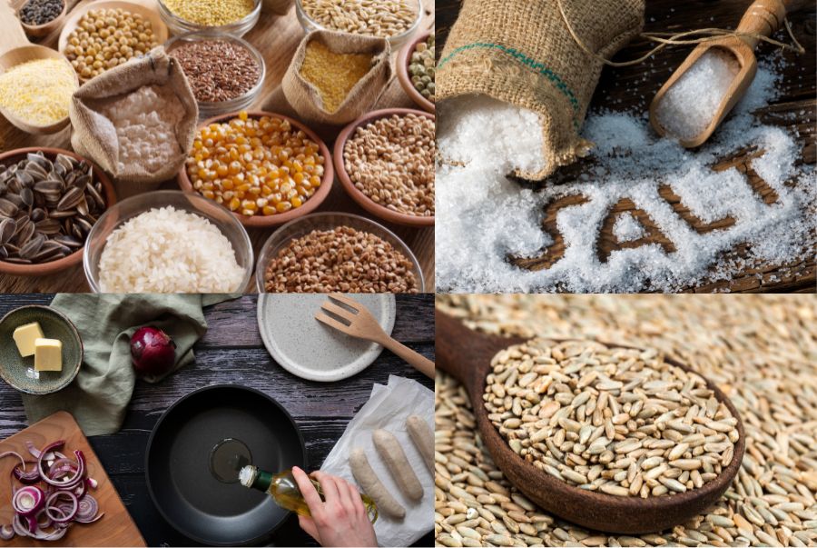 Về nguyên liệu, người Đan Mạch sử dụng nhiều loại ngũ cốc, đặc biệt là lúa mạch đen, khoai tây, các loại rau củ mùa đông và thịt heo, cá biển lạnh. Về gia vị, họ chuộng muối, thì là, hành tây, bơ và kem chua để làm dậy hương vị mà vẫn giữ sự thanh khiết. Về phương pháp chế biến, người đầu bếp thường sử dụng cách hấp, luộc, nướng hoặc muối, hun khói để giữ được độ tươi ngon tự nhiên và phù hợp nhu cầu bảo quản lâu dài trong mùa đông lạnh giá.