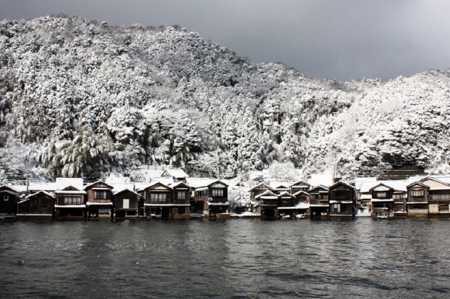 Mùa đông ở Ine No Funaya, tuyết trắng phủ trên những đồi núi và trên những mái nhà truyền thống càng làm khung cảnh ở đây cực kỳ ấn tượng và đẹp mắt như xứ sở thần tiên. Ảnh: scenic-japan.