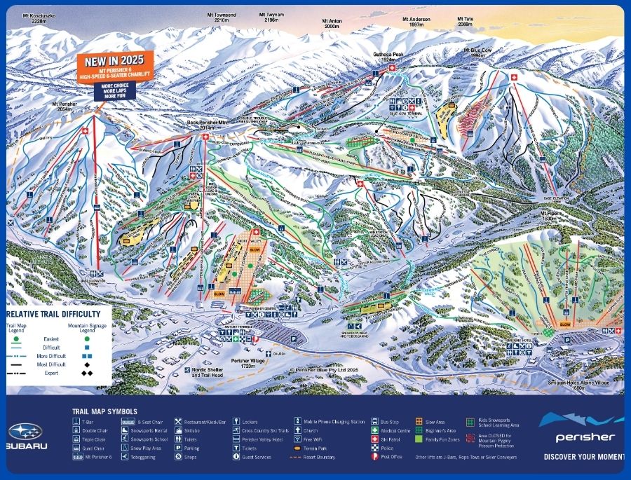 Bản đồ khu vực trượt tuyết tại Perisher