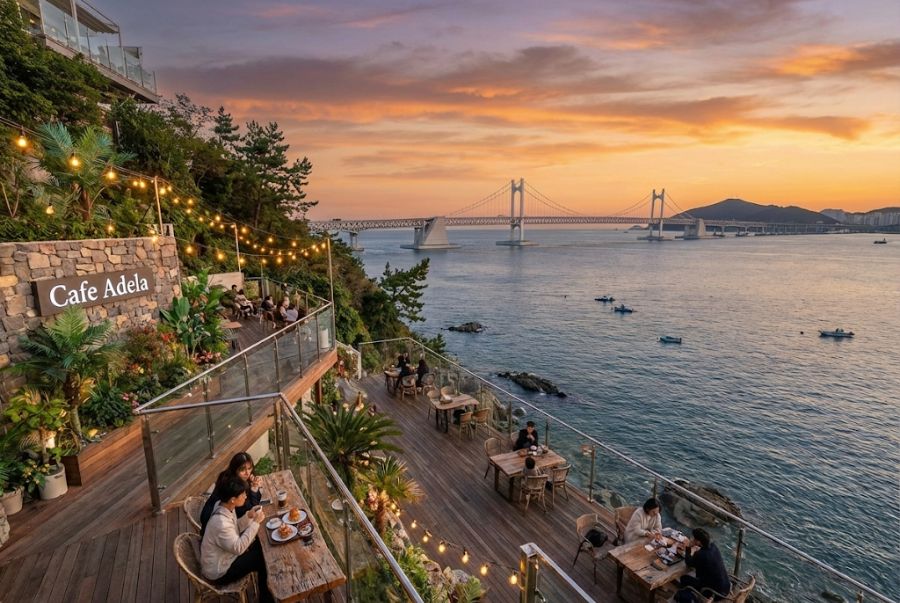 Busan không chỉ khiến du khách mê mẩn bởi biển xanh hay những khu phố rực rỡ, mà còn bởi những quán cafe sở hữu góc nhìn tuyệt đẹp, nơi mọi khoảnh khắc đều trở nên thi vị hơn. Ngồi trong một không gian thoáng sáng, trước mắt là biển trời rộng mở hoặc ánh đèn thành phố phản chiếu trên mặt nước, bạn sẽ hiểu vì sao văn hoá “ngắm cảnh qua ly cà phê” đã trở thành một phần không thể thiếu trong trải nghiệm của những ai ghé thăm Busan.