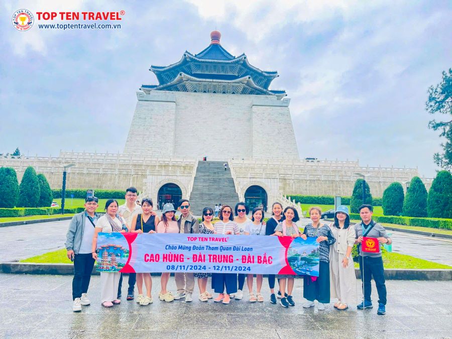 Đài Tưởng niệm Tưởng Giới Thạch, vị tổng thống đầu tiên của Trung Hoa Dân Quốc. Tòa nhà được xây dựng với mái ngói cong như cung điện Tử Cấm Thành ở Bắc Kinh, tường trắng gạch xanh cao 70m, bất kể du khách nhìn từ góc độ nào đều cảm nhận được sự hùng vĩ của ngôi nhà này.