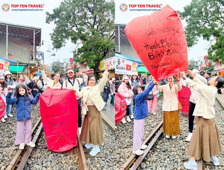 Làng Cổ Thập Phần - Shifen old street Shifen dịch ra tiếng Việt là Thập phần, cũng có nghĩa là hoàn hảo. Vì vậy mà nơi đây có tục thắp thiên đăng. Thiên đăng sáng lung linh trên bầu trời Shifen, cũng có nghĩa là những lời nguyện ước đang toả sáng, bay cao và xa. Tại đây Công ty tặng đèn lồng nguyện ước cho Đoàn (4 khách/1 đèn lồng).