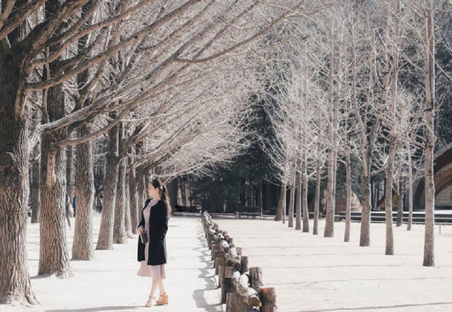 Mùa đông ở đảo Nami được bao phủ trong tuyết nguyên sơ, bạn không chỉ được nhìn thấy, mà còn được chạm vào và hơn nữa là vui đùa cùng hàng ngàn bông tuyết trắng. Được tận hưởng cảm giác ẩn mình trong lớp áo len dày cộm để đón từng đợt tuyết chớm rơi vô cùng lãng mạn. Tấm poster nổi tiếng nhất của bộ phim “Bản tình ca mùa đông” chính là cảnh chụp cặp đôi nhân vật chính tại Đường Metasequoia vào mùa đông trên đảo Nami. Những hàng cây thủy sam thẳng tắp trơ cành khẳng khiu này vẫn có sức cuốn hút kỳ lạ. Đến đảo Nami hầu như ai cũng tìm cách chụp hình với con đường và hàng cây hình như mùa nào cũng rất lãng mạn này. Đối với người đam mê trượt tuyết, bạn có thể xem xét tham gia các tour du lịch bao gồm cả đảo Nami và khu nghỉ dưỡng trượt tuyết Elysian Gangchon gần đó.