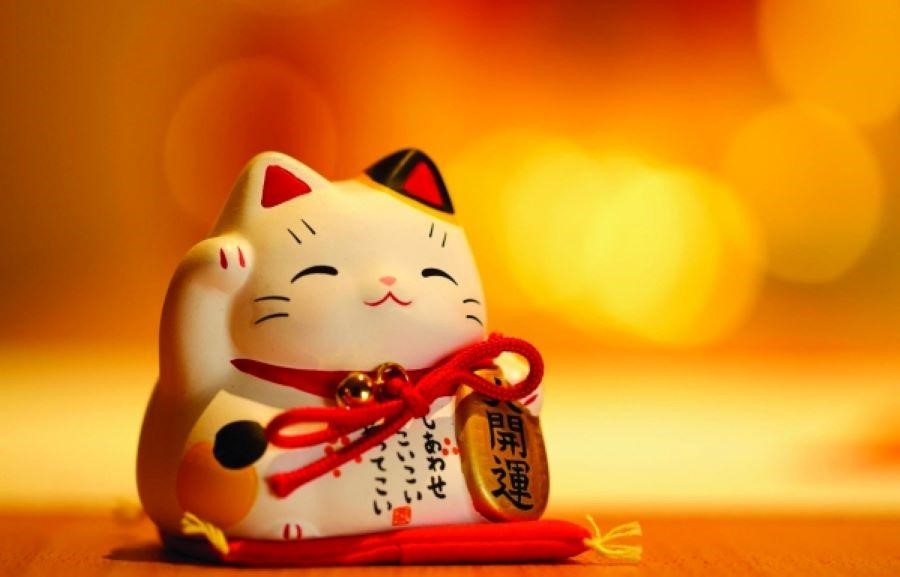Có lẽ biểu tượng “mèo may mắn” hay “mèo thần tài” Maneki Neko đã quá quen thuộc với nhiều người. Chú mèo đáng yêu này là linh vật nổi tiếng ở xứ sở phù tang, được cho là sẽ mang lại sức khỏe, may mắn và tài lộc cho chủ nhân của nó. Bên cạnh đó, mèo thần tài còn có tác dụng cầu duyên, cầu gia đạo. Nó xuất hiện lần đầu tiên vào cuối thời kỳ Edo tuy nhiên nguồn gốc chính xác của nó vẫn chưa ai biết. Thông thường, chúng được làm bằng gốm, sứ hoặc nhựa với tạo hình là một chú mèo đuôi ngắn và luôn vẫy tay chào mọi người. Những chú mèo thần tài này có mang một cái lục lạc vàng hay chuông vàng với ý nghĩa thu hút tài lộc, phú quý cho gia đạo.