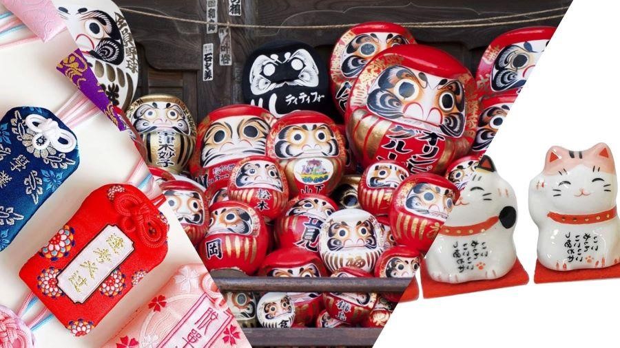 Trong văn hóa dân gian của đất nước phù tang, những linh vật đại diện cho sự may mắn được gọi là Engimono. Đây là biểu tượng tâm linh có sức mạnh thu hút may mắn, tránh vận rủi và bảo vệ thân chủ khỏi tai ương, bất trắc. Du khách đến du lịch xứ sở mặt trời mọc có thể dễ dàng bắt gặp hình ảnh Engimono tại bất kỳ đâu như trạm xe buýt, tàu điện ngầm, nhà riêng, trường học, công ty,... Một số Engimono nổi tiếng tại quốc gia này có thể kể đến như búp bê Daruma, cá chép (cá Koi), ếch, “chú mèo thần tài” Maneki Neko, chim hạc Tsuru, cú mèo Fukurou, Omamori...