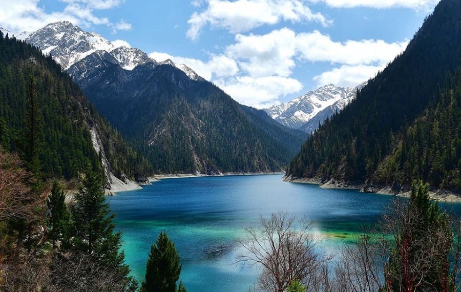 - Hồ Trường Hải - hồ nước lớn nhất trong hệ thống Cửu Trại Câu được tích tụ từ băng tan trên những đỉnh núi xung quanh