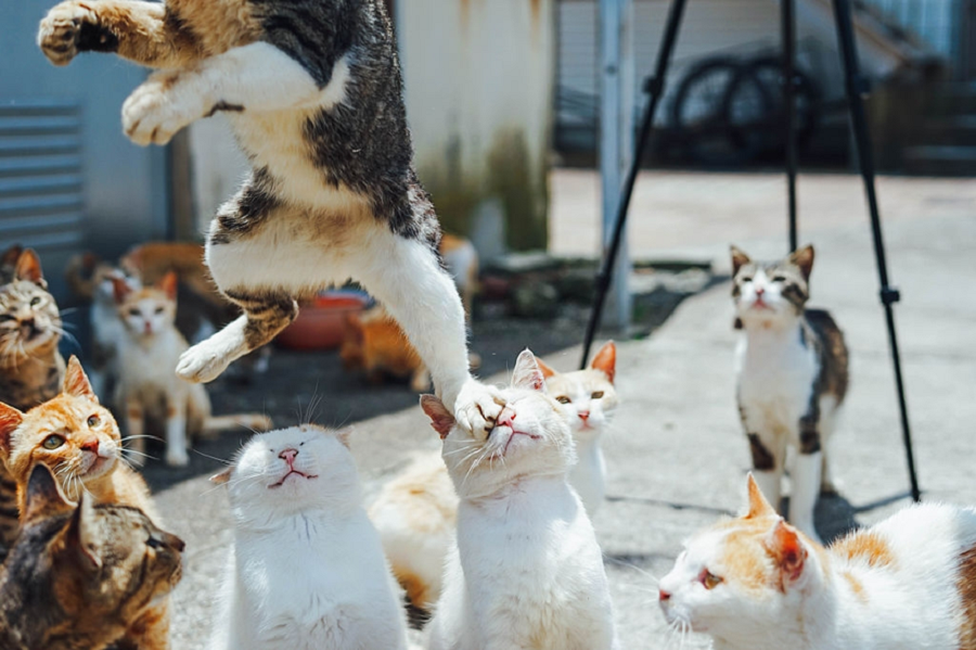 Những chú mèo trên đảo Tashirojima khá là dạn dĩ và không sợ người. Bọn chúng còn biết khi nào tàu chở du khách sẽ cập bến và đứng đợi sẵn, chúng lại còn “đáo để” khi biết cách làm nũng như thể muốn tạo ấn tượng với du khách. Những chú mèo ở đảo mèo Tashirojima đều béo ú. Mỗi ngày đều được cho ăn cá tươi và nhận được tình yêu của ngư dân. Chúng còn được các du khách chăm sóc và tặng thức ăn mỗi ngày.
