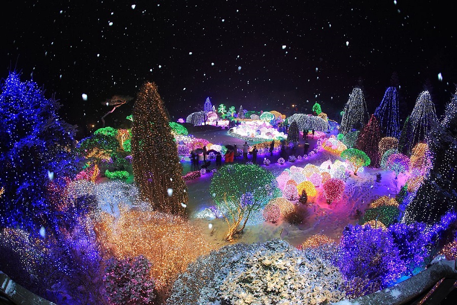 Nằm ở phía đông thủ đô Seoul, thuộc quận Gapyeong của Hàn Quốc, khu vườn The garden of morning calm với diện tích hơn 300.000 m2, là địa điểm du lịch thu hút đông du khách ghé thăm mỗi năm. Tại đây có chứa khoảng 5.000 loài thực vật, một số loài quí hiếm hoặc có nguy cơ tuyệt chủng. Vào dịp cuối năm, tuy không còn nhiều hoa đua nở như vào mùa xuân nhưng khu vườn vẫn trở nên rực rỡ với hàng nghìn ánh đèn led được trang hoàng tại đây.