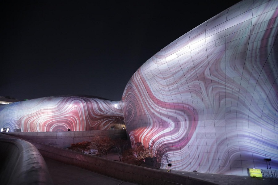 Trung tâm thiết kế Dongdaemun (DDP) luôn là một trong những điểm vui chơi sôi động và nằm trong Top10 địa điểm chụp ảnh checkin đẹp nhất ở Seoul. Vào buổi tối, bạn còn được ngắm vườn hồng với 30 ngàn bông hồng bằng đèn LED trên nóc trung tâm thiết kế.