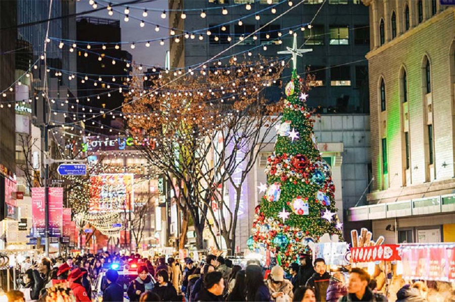 Giáng sinh là một trong những ngày lễ lớn nhất trong năm ở Hàn Quốc. Vào dịp này có rất nhiều địa điểm bạn có thể đến để vui chơi. Trong đó Myeongdong được xem là điểm đến hấp dẫn nhất.