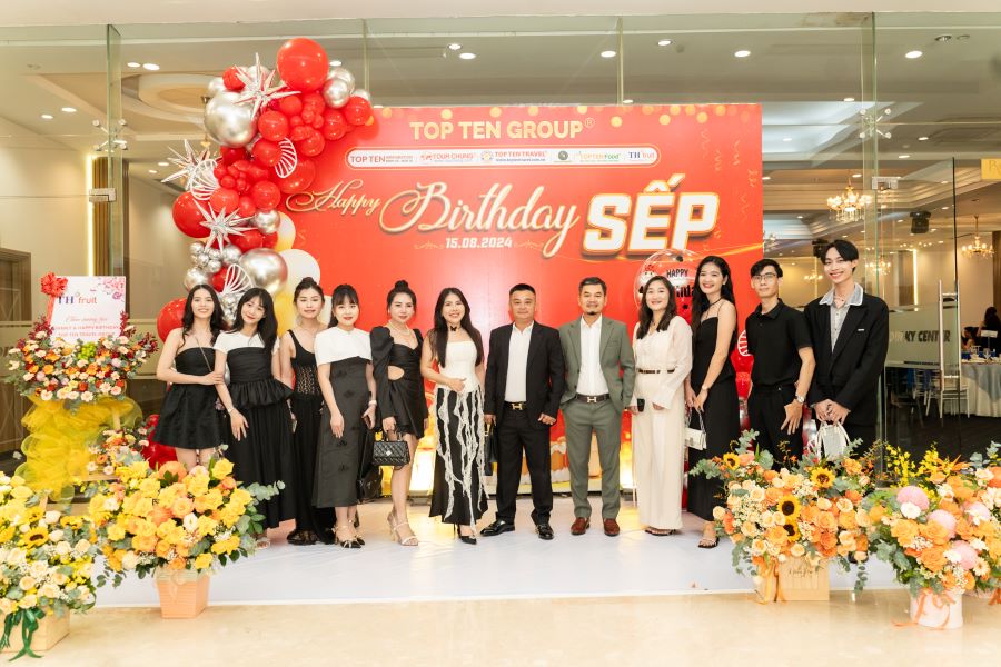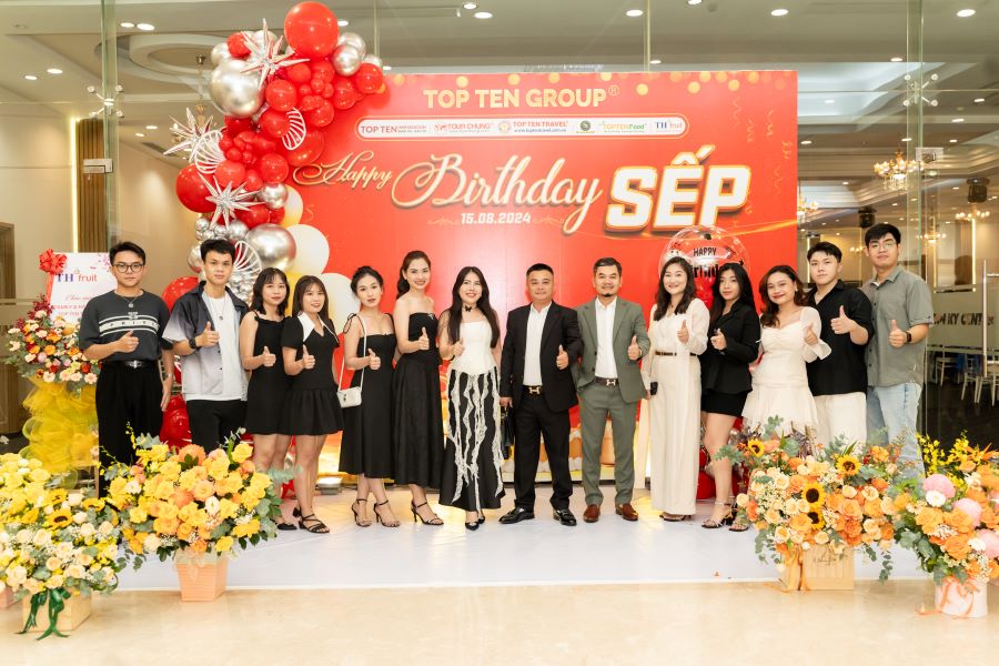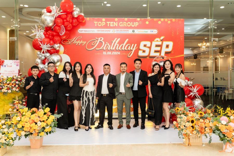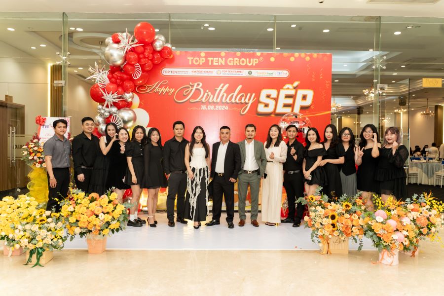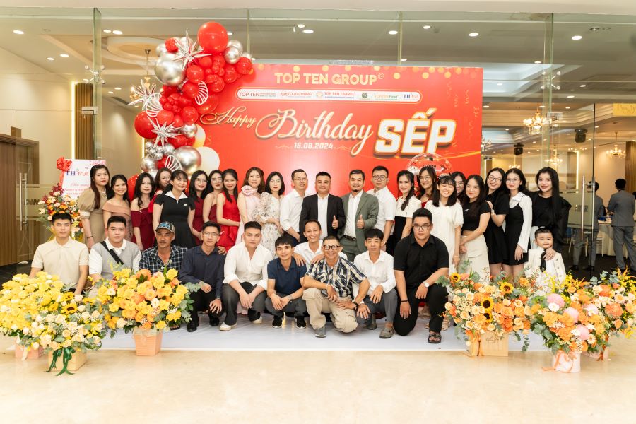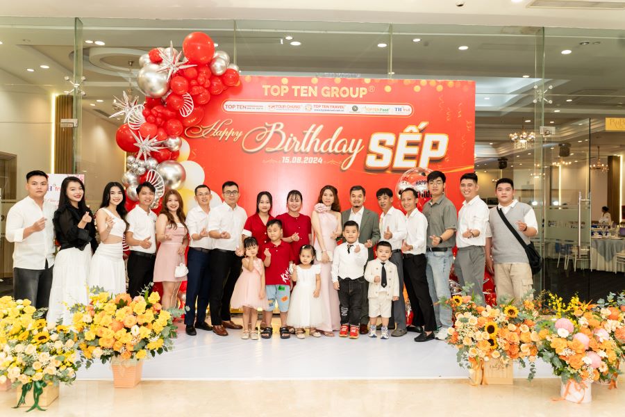 Vào tối ngày 15/8 buổi tiệc “FAMILY DAY & HAPPY BIRTHDAY SẾP” của tập thể Top Ten Group đã diễn ra tại Nhà Hàng Dìn Ký với sự góp mặt của Ban Lãnh Đạo Cấp Cao cùng toàn thể 300 nhân viên Công Ty. Đây là một hoạt động thường niên diễn ra hàng năm, “FAMILY DAY & HAPPY BIRTHDAY SẾP” không chỉ đơn thuần là buổi tiệc mừng sinh nhật Sếp và các Bạn sinh nhật tháng 8 mà ý nghĩa của buổi tiệc lại càng được nhân lên gấp bội khi mỗi thành viên trong công ty có cơ hội được gắn kết, chia sẻ và tạo dựng những kỷ niệm đẹp với nhau.