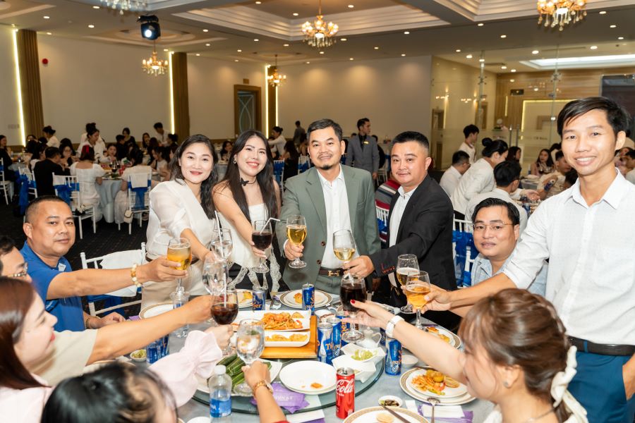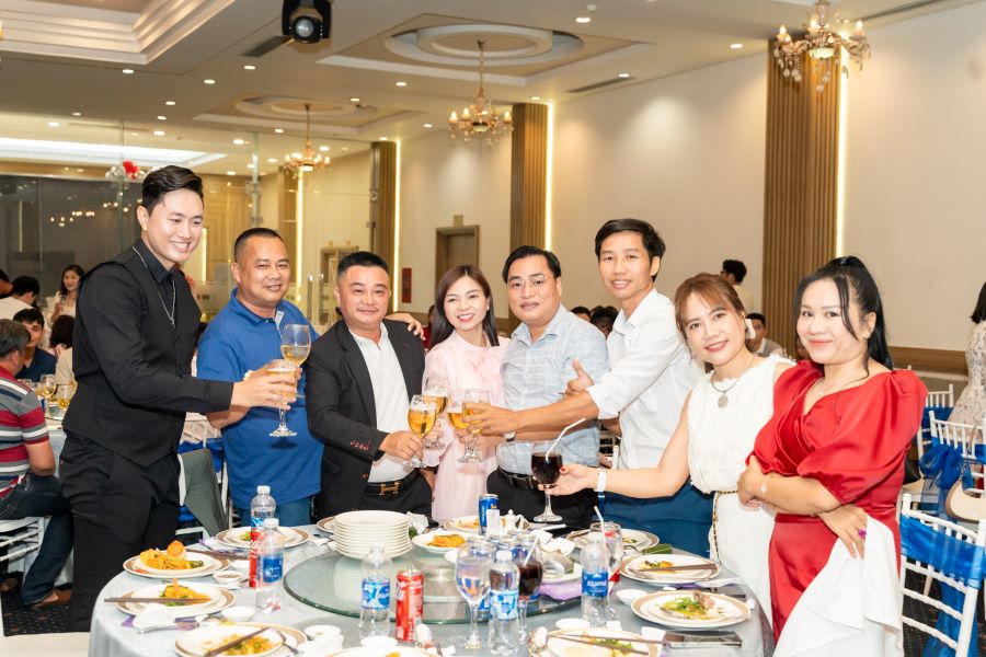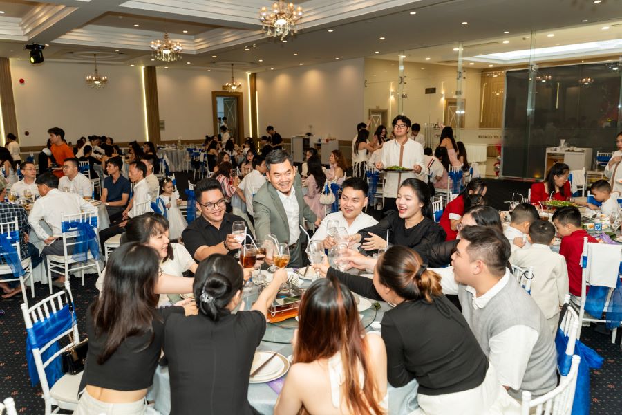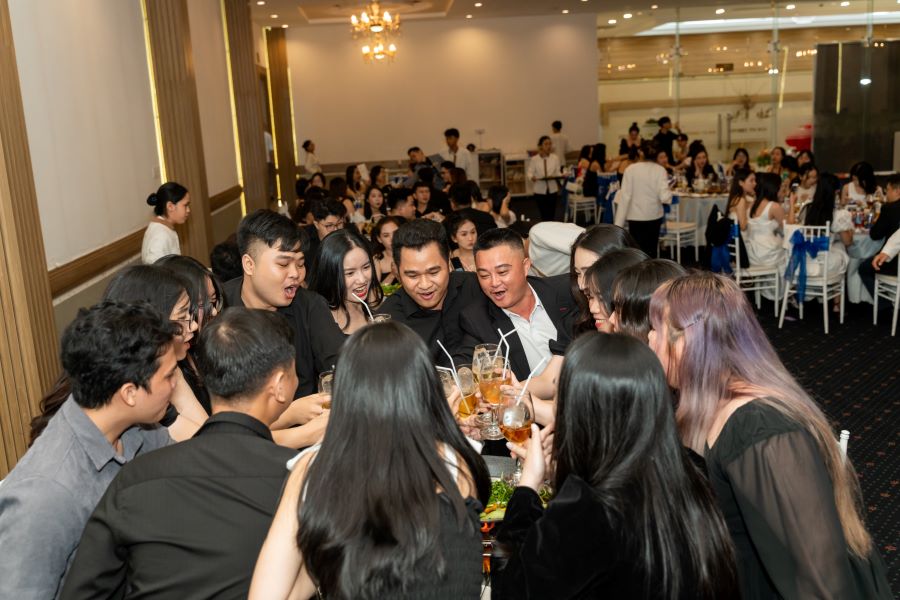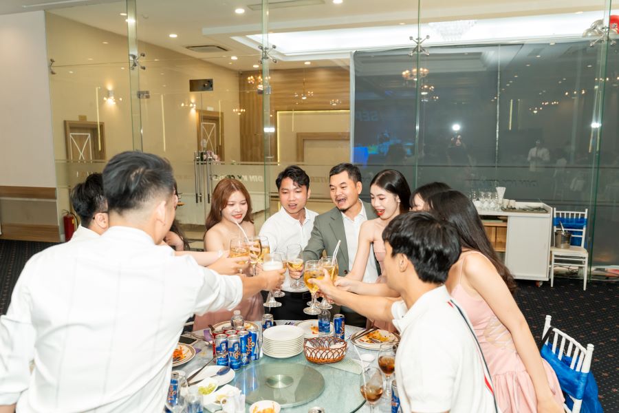 Sau màn khai mạc, không khí buổi tiệc càng trở nên sôi động hơn bao giờ hết. Mọi người cùng nhau nâng ly, hô vang những câu chúc mừng sinh nhật thật vui nhộn. Tiếng cười nói rộn rã vang vọng khắp căn phòng, tạo nên một không khí thật sự náo nhiệt xuyên suốt buổi tiệc.