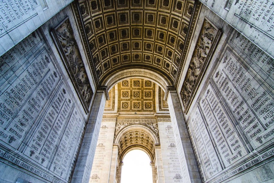 Chụp ảnh kiến trúc từ nhiều góc độ: Mỗi mặt của Khải Hoàn Môn mang một bố cục và chi tiết điêu khắc riêng, vì vậy việc đi vòng quanh công trình giúp bạn khám phá nhiều góc chụp khác nhau, từ toàn cảnh hoành tráng đến các chi tiết phù điêu tinh xảo.