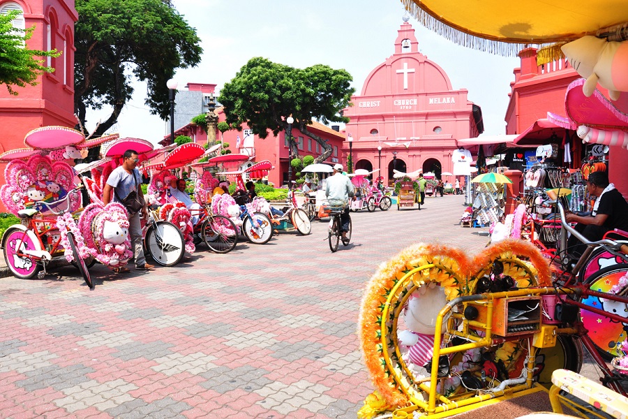Malacca nổi tiếng với một loại xe hoa 3 bánh, tên gọi trishaws. Đây được xem như hình ảnh gắn liền với thành phố cổ này. Xe hoa được trang trí theo nhiều chủ đề thu hút du khách. Mỗi lượt đi khoảng 20 phút với giá 10RM (tương đương 70.000 đồng). Ngồi xe xích lô dạo một vòng khu phố, ngắm nhìn cảnh vật xung quanh là điều mà mình nghĩ bạn khó có thể bỏ qua được.