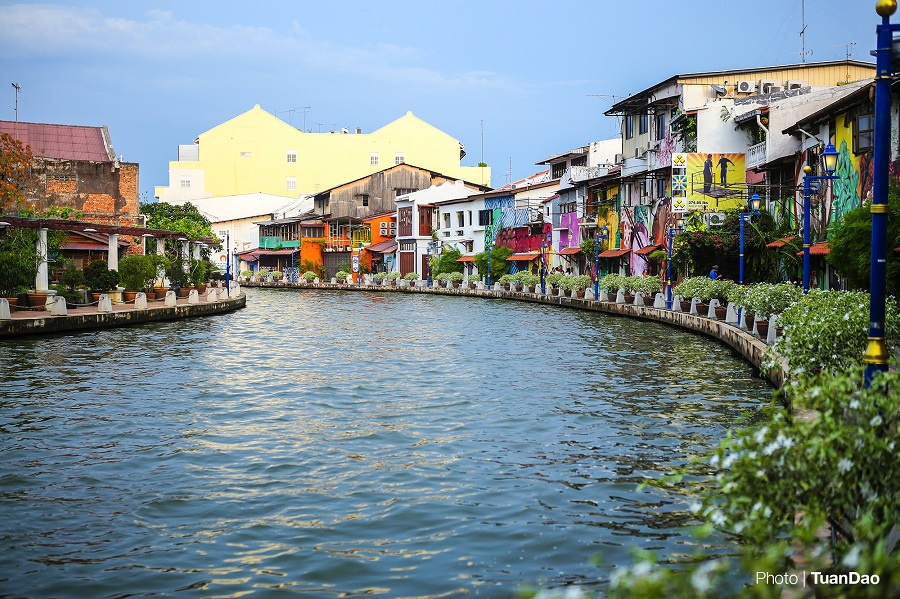 Ngồi ung dung trên con thuyền thả trôi trên dòng sông Melaka, ngắm những ngôi nhà nhỏ xinh, những bức bích hoa độc đáo trên tường, bên những hàng cây, những bông hoa khoe sắc hai bên bờ sông, khung cảnh trở nên thơ mộng và lãng mạn hơn bao giờ hết.