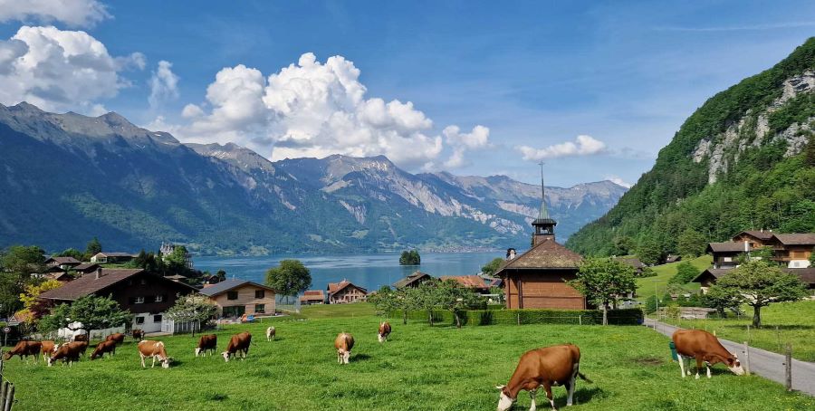 Hồ Brienz chính là điểm nhấn tạo nên vẻ đẹp của Iseltwald. Nước hồ trong vắt đến độ có thể nhìn thấy từng đàn cá tung tăng bơi lội. Vào mùa xuân, hồ khoác lên mình màu xanh ngọc bích lấp lánh; mùa hè, mặt hồ phẳng lặng như gương soi bóng mây trời; thu đến, sắc vàng rực rỡ của lá cây tô điểm cho khung cảnh thêm thơ mộng; và đông sang, tuyết phủ trắng xóa tạo nên khung cảnh huyền ảo như trong truyện cổ tích. Nổi bật giữa khung cảnh thiên nhiên hùng vĩ là những ngôi nhà gỗ mộc mạc nép mình bên sườn đồi. Những mái nhà gỗ màu nâu trầm hòa quyện với màu xanh của cây cối, tạo nên một bức tranh làng quê bình yên, thơ mộng. Nơi đây, hứa hẹn mang đến cho bạn những giây phút thư giãn tuyệt vời cùng nhiều kỉ niệm khó phai.