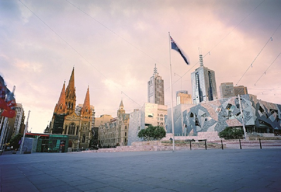 Quảng trường Federation, nằm đối diện là Ga Flinder, nối kết giữa dòng sông Yarra. Quảng trường là sự tổng hợp của vẻ đẹp kiến trúc, nghệ thuật và sự thân thiện của thành phố. Tại đây, bạn có thể gặp nhiều tình nguyện viên là những công dân đã nghĩ hưu rất sẵn lòng hướng dẫn và giúp đỡ bạn. Đặc biệt, vào buổi tối, hiệu ứng ánh sáng tạo nên vẻ lung linh và huyền ảo của lối kiến trúc đặc biệt của thành phố về đêm.