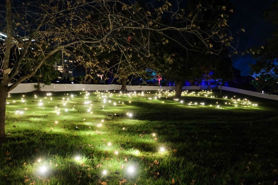 Firefly Field, Royal Botanic Gardens: Nếu bạn muốn 1 chút gì đó thơ mộng và lãng mạn thì tuyệt đối không thể bỏ qua địa điểm này. Đom đóm trong đêm luôn tạo cảm giác thơ mộng và duyên dáng trong thi ca, điện ảnh, đó chắc hẳn là lý do vì sao nhóm nghệ sĩ người Hà Lan đã quyết định tạo nên một tác phẩm sắp đặt ánh sáng tinh tế, mô phỏng 500 con đom đóm bay lơ lưng trên mặt đất, chớp tắt liên tục nhưng đang tìm kiếm bạn tình trong mùa giao phối. Tác phẩm làm bằng cấu trúc thép với những thanh uốn tạo nên những chuyển động đầy mê hoặc trong khu vườn bách thảo hoàng gia.
