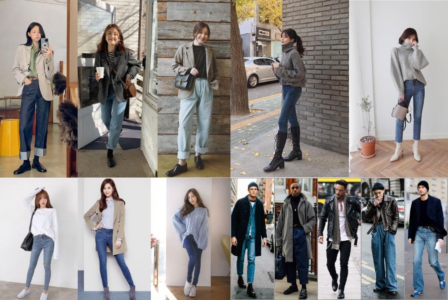 Không chỉ giữ ấm tốt, quần jeans còn dễ phối với mọi loại áo. khách du lịch Châu Âu có thể lựa chọn sử dụng trang phục này cho cả ngày dạo phố lẫn các buổi tối thư giãn. Ưu tiên màu tối để dễ phối đồ và phù hợp với không khí mùa thu.