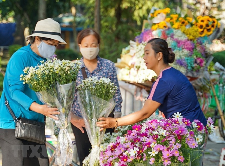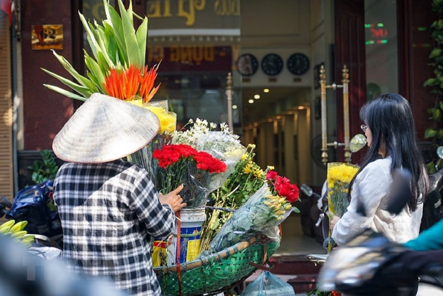 Mua hoa bán rong là một thói quen của người Hà Nội. Ảnh: Khánh Hoà/TTXVN.