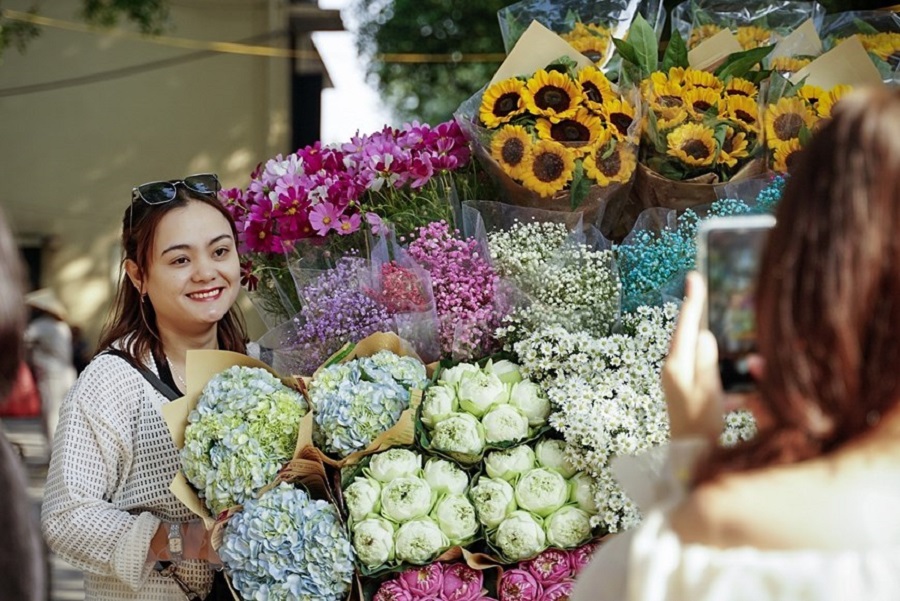 Những xe hoa rong - xe chở mùa ấy không chỉ phục vụ nhu cầu chơi hoa, thưởng hoa của người Hà Thành, tô điểm cho cảnh sắc Thủ đô mà còn tạo ấn tượng sâu sắc đối với du khách khi đến với Hà Nội. Ảnh: Khánh Hoà/TTXVN.