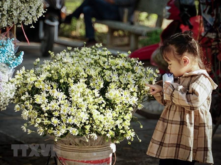 Chỉ cần nhìn cảnh mua hoa cúc hoạ mi của người bán hoa rong là ai cũng biết Hà Nội đang trong tiết trời cuối Thu đầu Đông. Ảnh: Khánh Hoà/TTXVN.