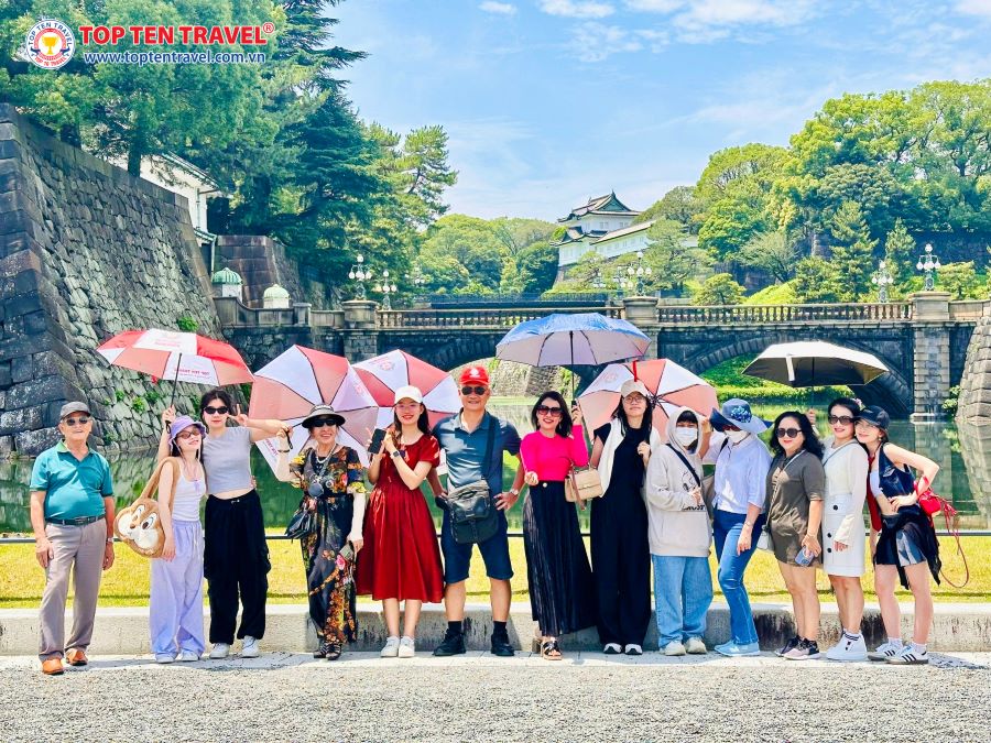 Nói đến Tokyo thì không thể bỏ qua Cung điện Hoàng gia Nhật Bản - một biểu tượng hoàng gia tráng lệ và đậm chất lịch sử ngay giữa lòng đô thị hiện đại. Được xây dựng trên nền móng của lâu đài Edo cổ kính, địa điểm du lịch miễn phí tại Tokyo này đã chứng kiến biết bao thăng trầm của Nhật Bản và là nơi sinh sống của Thiên hoàng và gia đình hoàng tộc. Kiến trúc của Cung điện Hoàng gia là sự kết hợp hài hòa giữa nét truyền thống và hiện đại. Những mái ngói cong vút, các bức tường trắng tinh khôi cùng những khu vườn Nhật Bản tỉ mỉ tạo nên một không gian thanh bình và trang nghiêm. Du khách không chỉ bị ấn tượng bởi vẻ đẹp bề ngoài của cung điện mà còn bởi sự tinh tế trong từng chi tiết thiết kế.