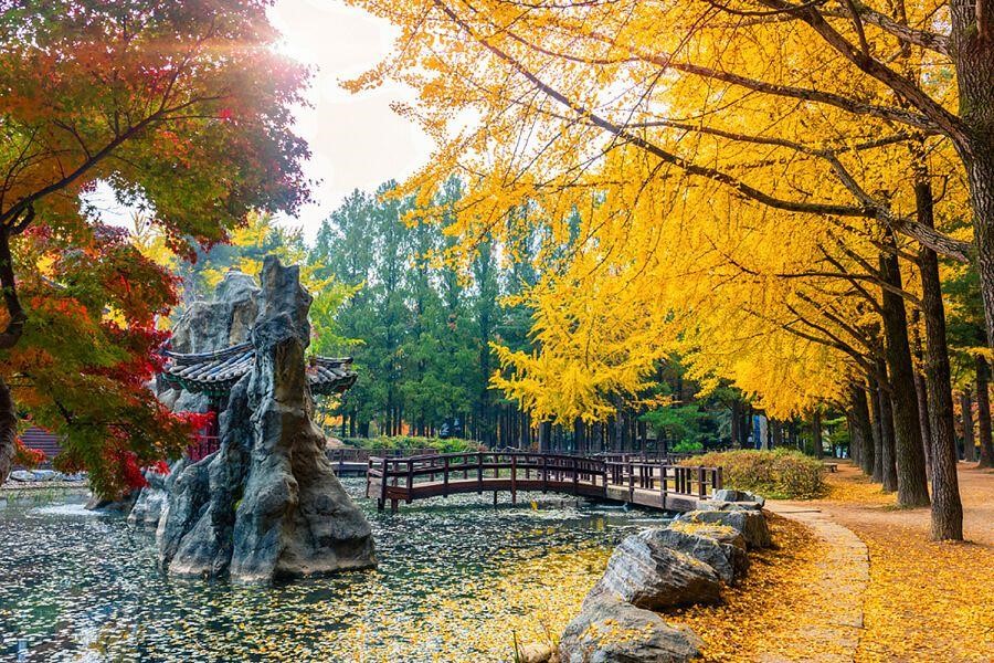 Đảo Nami từng là bối cảnh chính cho bộ phim “Bản tình ca mùa đông” nổi tiếng một thời. Nơi đây được thiên nhiên ưu ái cho cảnh sắc thiên nhiên thơ mộng, thời tiết ôn hòa, dễ chịu. Đặc biệt vào mùa thu, toàn bộ khung cảnh ở đảo như khoác lên mình chiếc áo màu đỏ rực của những chiếc lá phong hay sắc vàng của những tán cây ngân hạnh.
