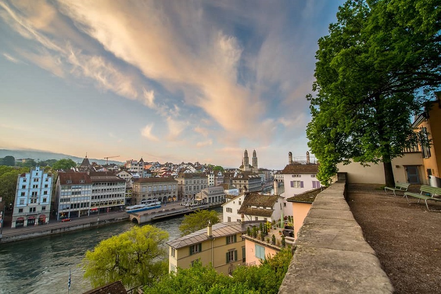 Lindenhof là quảng trường công cộng tuyệt đẹp nằm ở thị trấn cổ Zurich và đây là điểm đến du lịch nổi tiếng không thể thiếu trong danh sách nên đến tham quan trong chuyến du lịch Thụy Sĩ của du khách. Từ vị trí bức ảnh này, du khách có thể nhìn thấy khung cảnh của sông Limmat, khung cảnh cổ kính của các khu phố cổ, các tòa nhà, nhà thờ,…Nơi đây cũng được biết đến là nơi đáng sống nhất trên thế giới, hàng năm thu hút rất đông du khách đến đây tham quan.
