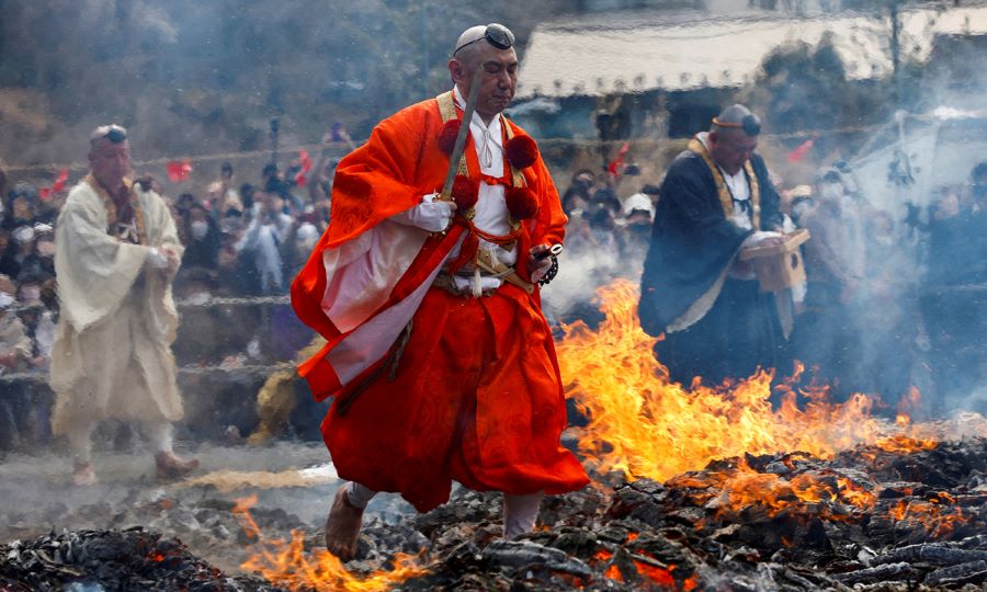 “lễ hội đi trên lửa” một trong những lễ hội độc đáo hàng đầu tại Nhật Bản trong những ngày đầu xuân, lễ hội này được tổ chức hàng năm vào ngày 13/3 tại một ngôi đền nằm tại phía tây Tokyo với sự tham gia của các tín đồ Shugendo, tôn giáo pha trộn các yếu tố giữa Thần đạo, Phật giáo và Đạo giáo.