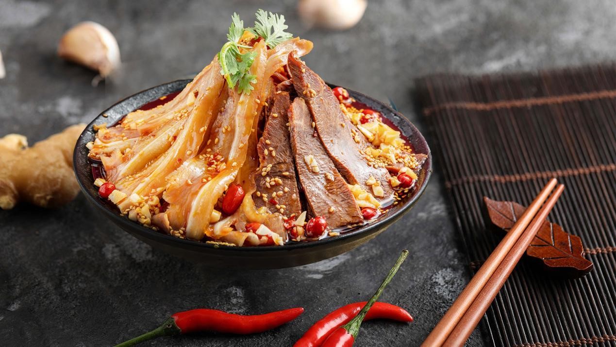 Lưỡi và lòng bò hay Fu Qi Fei Pian là một món ăn lạnh với các nguyên liệu chính bao gồm thịt bò, lòng bò, bắp bò, gân bò trộn với nước sốt cay đặc trưng. Món ăn hấp dẫn này sẽ được ăn kèm với một ít rau mùi, lạc và vừng để bớt ngấy, rất thích hợp để nhâm nhi vào những ngày cuối tuần. Theo lời kể, Fu Qi Fei Pian được một cặp vợ chồng có một cuộc hôn nhân vô cùng viên mãn phát minh ra, vì thế mà người Trung Quốc còn gọi vui món này là “miếng phổi vợ chồng”.