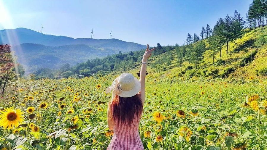 Khác với sắc hồng dịu dàng của những cánh đồng hoa cúc vạn thọ phía tây Daegu, mùa hoa hướng dương sẽ trải một sắc vàng rực rỡ trên nền lá xanh mướt của đất nước Hàn Quốc. Cánh đồng hoa hướng dương bạt ngàn trải dài bên những ngọn đồi trùng điệp ở Hàn Quốc thực sự quyến rũ.