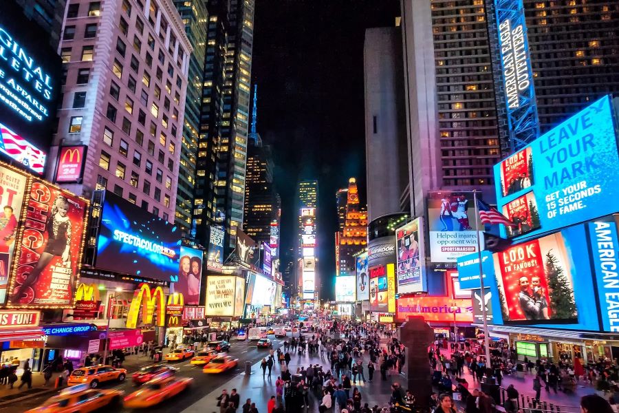 Nhắc đến những thành phố sôi động, náo nhiệt thì không thể không nhắc đến New York, thủ phủ hoa lệ của nước Mỹ. Nơi đây được mệnh danh là "Thành phố không bao giờ ngủ" bởi nhịp sống hối hả, sôi động diễn ra suốt 24/7, thu hút du khách từ khắp nơi trên thế giới bởi sự sôi động, náo nhiệt và những địa điểm tham quan độc đáo. Đặt chân đến New York, chắc hẳn bạn sẽ choáng ngợp trước nhịp sống hối hả, sôi động như không bao giờ tắt. Dòng người tấp nập trên những con phố nhộn nhịp, tiếng còi xe inh ỏi, tiếng rao hàng vang vọng,... tất cả hòa quyện tạo nên một bản giao hưởng sôi động, náo nhiệt đặc trưng của New York. Thành phố không bao giờ ngủ này luôn vận động, luôn tràn đầy năng lượng, khiến du khách không thể cưỡng lại sự lôi cuốn của nó.