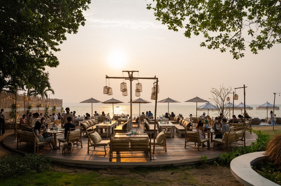 Đây là quán cà phê, bar và nhà hàng mới mở bên bờ biển. Diện tích quán khá rộng, thích hợp cho nhiều đối tượng khách hàng. Quán có menu đồ ăn, nước uống đa dạng phong phú, thỏa thích lựa chọn món Thái, Ý, Nhật, hải sản…