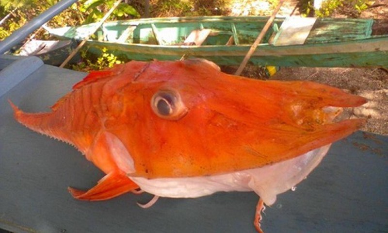 Cá bọc thép Đây là loài cá biển cực kỳ hiếm gặp do chỉ sống ở vùng nước sâu và có thân hình hết sức độc đáo. Sở dĩ có tên gọi cá chào mào áo giáp là vì loài cá này nhìn bề ngoài trông giống như một loài giáp xác với lớp vỏ dày và cứng. Phía trước miệng cá có 2 thanh dài nhọn song song như 2 cái càng, phía sau là một cái đuôi nhọn hoắc có thể làm bị thương bất kỳ đối thủ nào. [caption id="attachment_48344" align="aligncenter" width="900"]