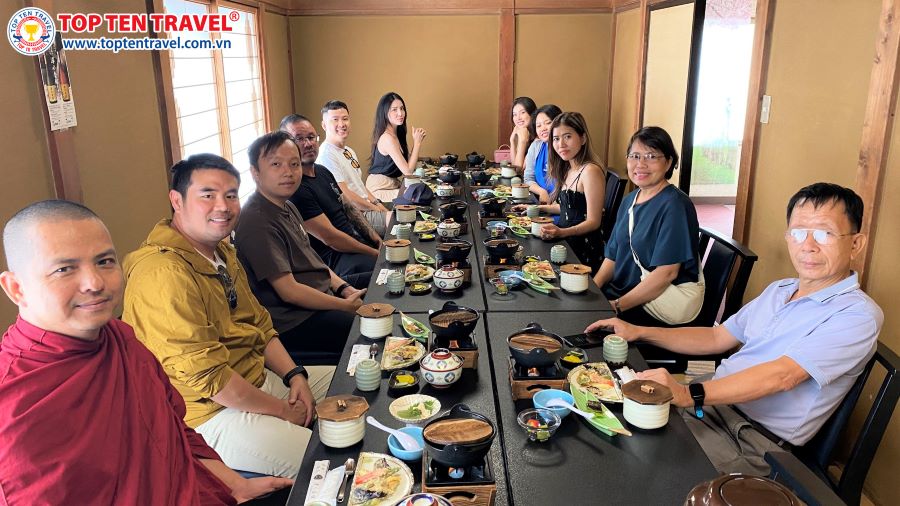 Ngoài ra, du khách tham gia tour Nhật cùng Top Ten Travel sẽ được nghỉ ngơi tại khách sạn gần trung tâm thuận tiện cho việc mua sắm cũng như trải nghiệm ẩm thực đường phố, trải nghiệm mặc trang phục Yukata và văn hóa trà đạo độc đáo của Nhật Bản, trải nghiệm tắm khoáng Onsen, trải nghiệm tàu cao tốc Shinkansen - niềm tự hào to lớn của người dân đất nước phù tang,...