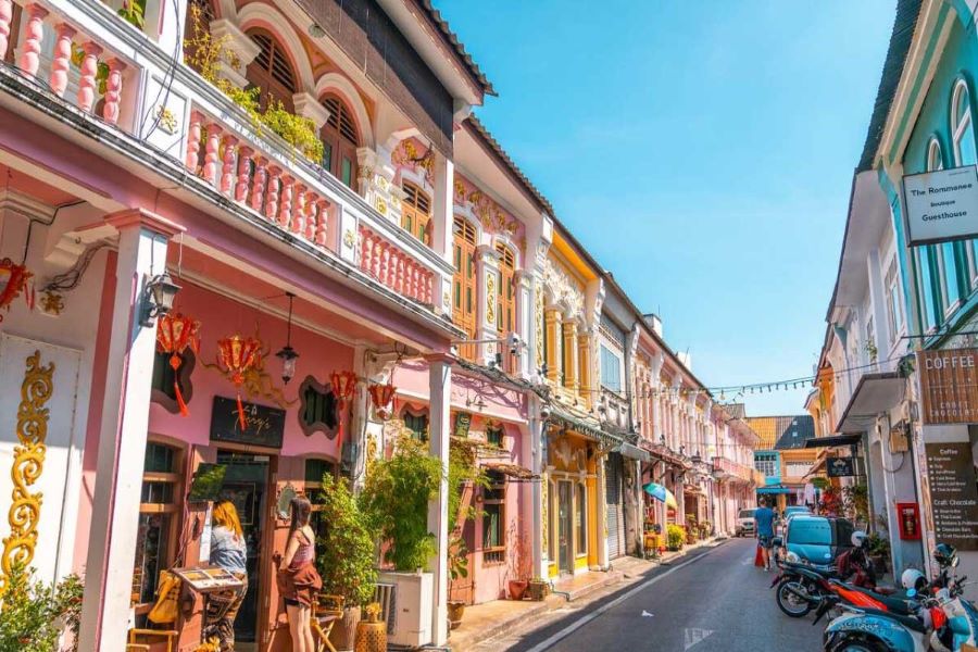Phố cổ PhuKet: Địa điểm tọa lạc của những tòa nhà kiến trúc Bồ Đào Nha cổ đang được Thái Lan lưu giữ. Du khách sẽ được tự do dạo chơi, tham quan và chụp ảnh. Bên cạnh đó, tại đây cũng bày bán các loại trang phục truyền thống của người Thái và một số đồ lưu niệm khác.