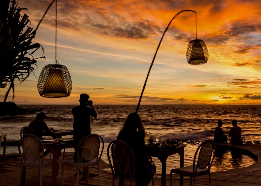 Khi đến đây, bạn có thể tận hưởng cảnh hoàng hôn lãng mạn tại Kuta theo nhiều cách khác nhau như dạo bước trên bờ cát, tận hưởng làn gió mát và ngắm nhìn bầu trời chuyển màu. Hoặc chọn một quán cà phê ven biển, nhâm nhi ly cocktail và đắm chìm trong khung cảnh thơ mộng.