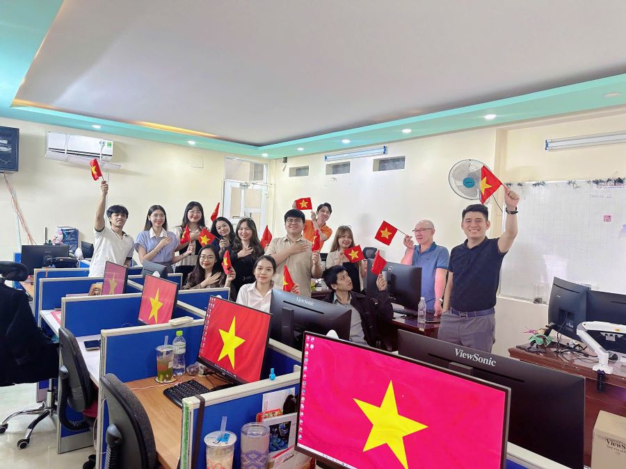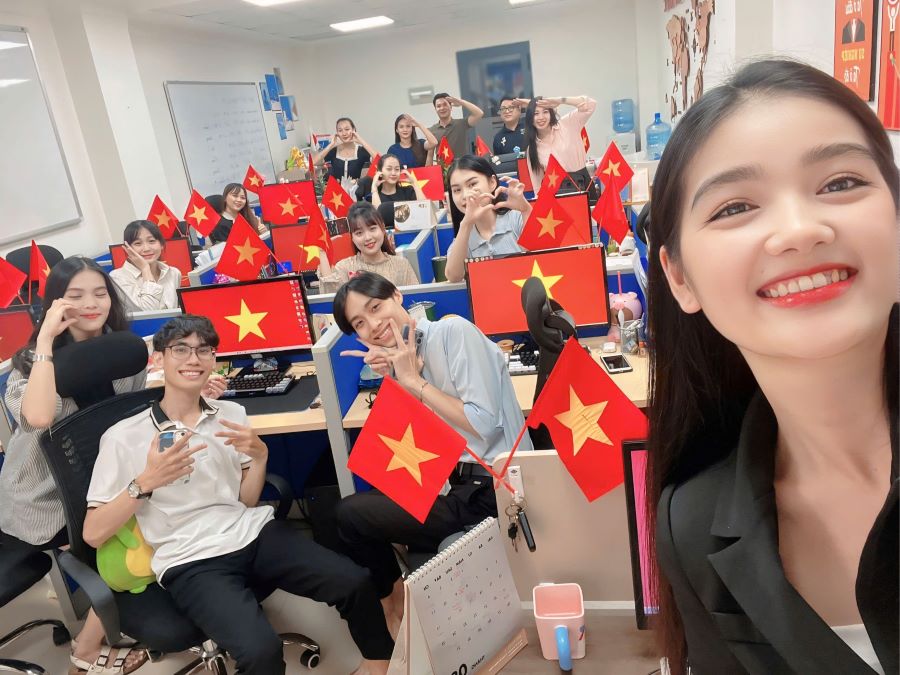 Hình ảnh những lá cờ đỏ sao vàng được bày trí trang nghiêm trong không gian phòng làm việc như một lời nhắc nhở về truyền thống lịch sử hào hùng của dân tộc, khơi dậy lòng tự hào và trách nhiệm của mỗi nhân viên.