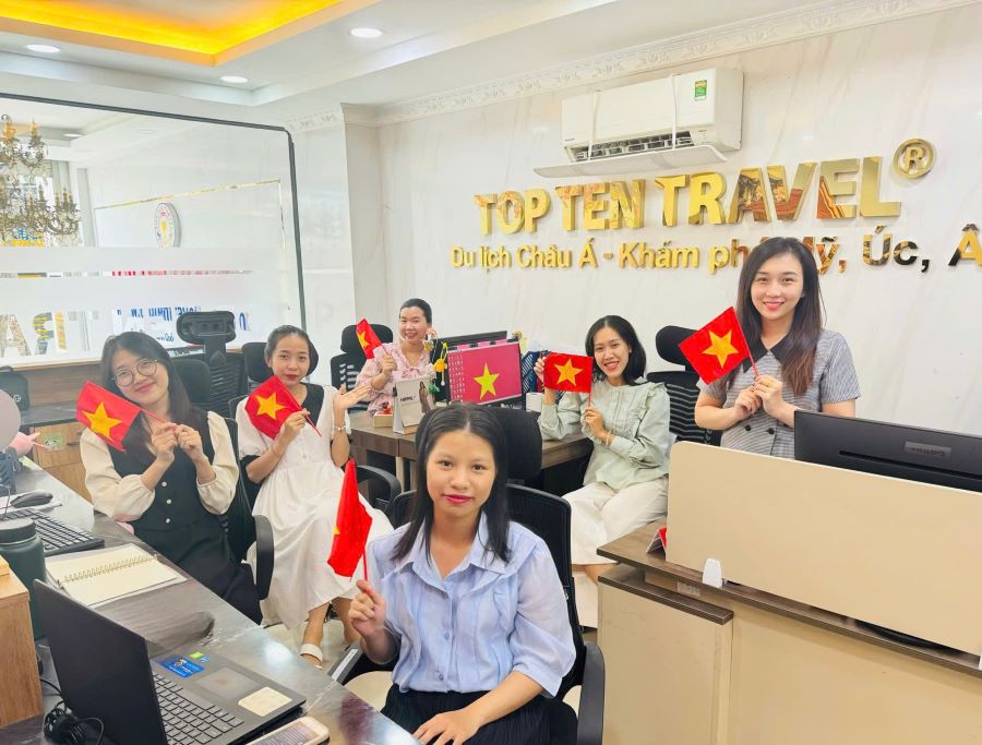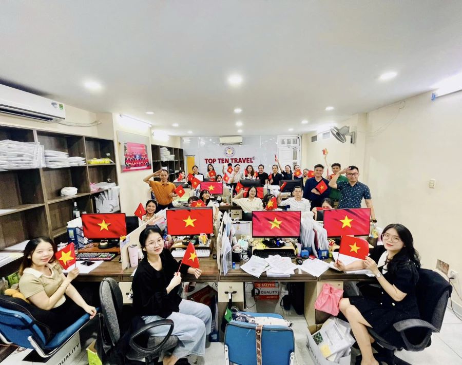 Sau đây là một vài hình ảnh rực rỡ sắc Cờ Tổ Quốc tại trụ sở Top Ten Travel.