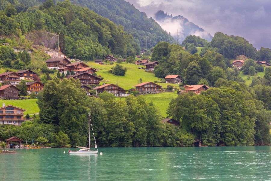 Dạo quanh ngôi làng nhỏ Làng Iseltwald bên hồ Brienz. Ngay cạnh hồ là núi non trùng trùng điệp điệp, ngôi làng như trải dài. Không chỉ vậy, bối cảnh trong làng còn là nơi diễn ra bộ phim hot hit nhất năm 2019 – “Hạ cánh nơi anh”.
