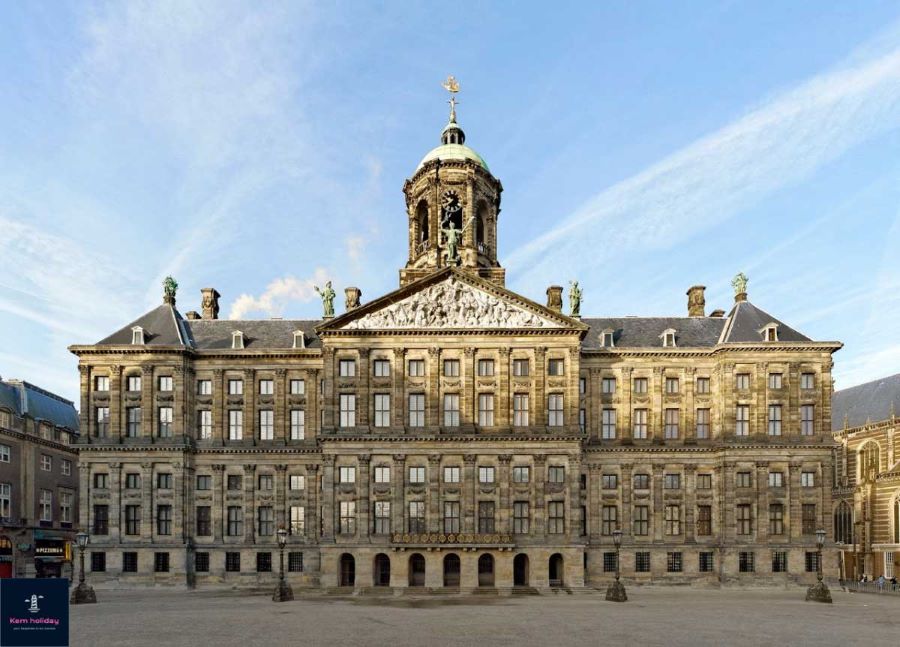 Cung điện Hoàng gia Amsterdam - được xây dựng vào năm 1913, là một lâu đài hoành tráng với bức tượng người-chim ở bên ngoài chỗ cửa vào, hình dáng khổng lồ với kích thước là 29 tấn. Cung điện được mệnh danh là một trong số các kỳ quan của thế giới. (Tham quan bên ngoài)